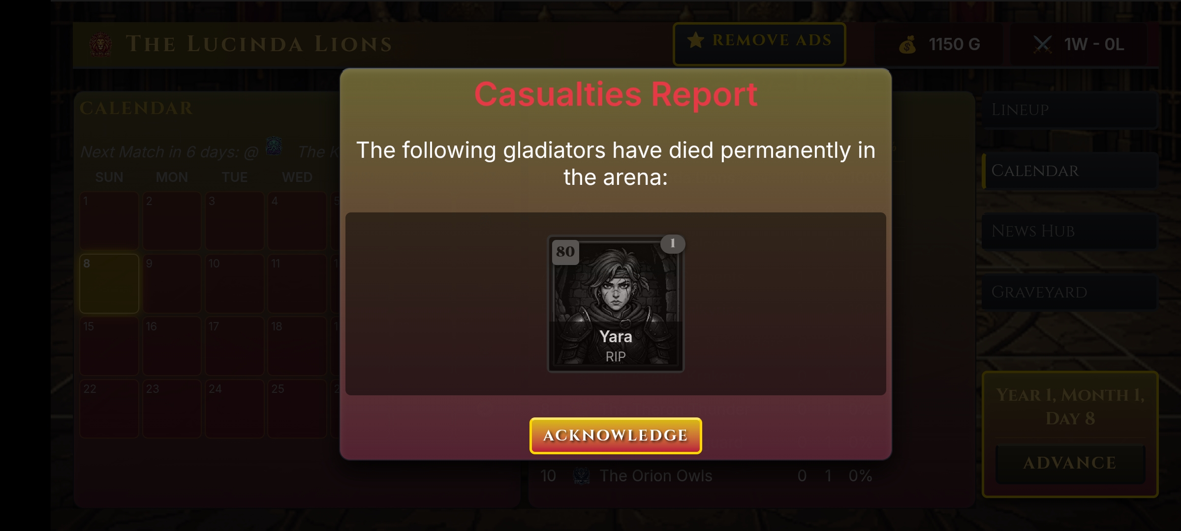 Arena Manager is a game about managing a team of warriors in a land of fantasy and magic. The cities of the world have organized into a combat sports league and battle each other for glory and the prized Aowan Cup each season.